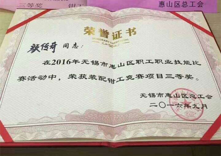 9月26日, 2016年惠山區(qū)職工職業(yè)技能大賽在惠山中等專業(yè)學(xué)校實(shí)訓(xùn)基地鳴鑼開賽; 這次比賽結(jié)束獲獎的顏傳奇、魏勇在“無錫市惠山區(qū)總工會”網(wǎng)站上刊登表揚(yáng)。如圖所示