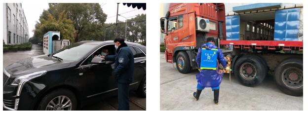 5、對外來人員進行測溫、核驗錫康碼,以及外來車輛消毒;